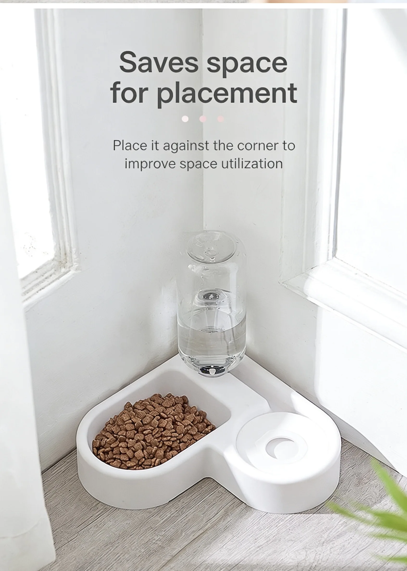 This 2-in-1 pet bowl set is designed to simplify mealtime for cats and small dogs, combining a food bowl with an automatic water dispenser for convenience and hygiene.